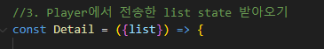 - [Player.jsx]에서 전송한 list state 값 매개변수로 받아오기