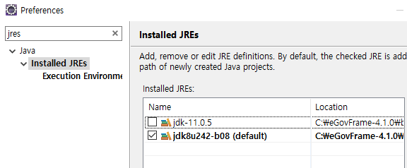 - JDK 적용: window-preferences-installed JREs