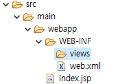 - view 파일을 모아놓을 폴더 생성: View는 반드시 Controller를 통해 실행되어야 하므로 webapp-WEB-INF 폴더에 별도의 폴더를 만들어서 view를 만든다.