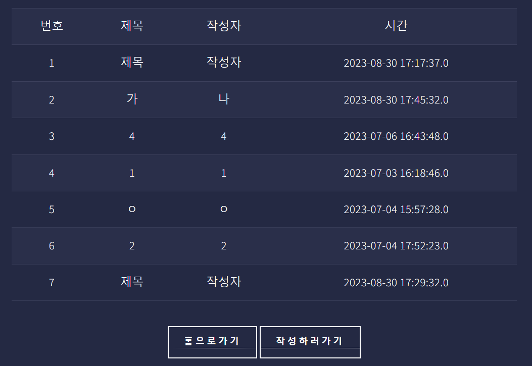 - BoardMain에서는 BoardListController에서 새로 작성한 게시글을 객체 바인딩하였으므로 새로 작성한 게시글을 포함하여 게시글을 출력함