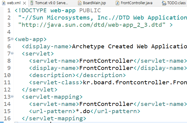 - web.xml에서 FrontController servlet-mapping 생성 확인