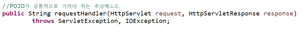 3. 요청한 POJO를 실행시키기: 요청한 주소의 requestHandler 메소드(추상메소드) 호출 →이동할 viewname이 반환됨