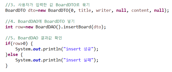 - 사용자가 입력한 BoardDTO로 묶어서 BoardDAO에 넣기