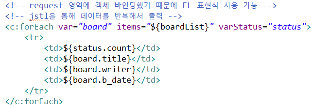 - jstl 사용하여 forEach문을 통해 데이터를 반복해서 출력