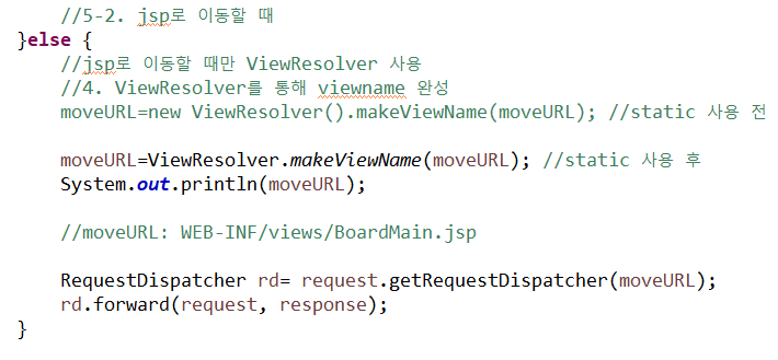 5. 페이지 이동(forward 방식): ViewResolver를 통해 완성된 주소로 페이지 이동하기