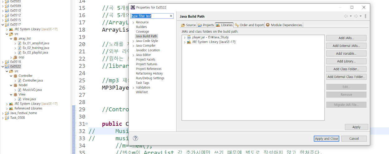 [JDBC] JDBC(JAVA Database Connectivity) Java에서 Database에 접속할 수 있도록 하는 API API(Application Interface): 프로그램과 프로그램의 상호작용을 도와주는 매개체 연결과정 [실습]회원가입, 로그인 기능 구현 [DB] DB워크시트에 회원정보 작성 -SELECT: 회원조회(로그인) -INSERT: 회원가입 -UPDATE: 회원정보 수정 -DELETE: 회원정보 삭제 DB 워크시트를 JAVA 프로젝트 내에 저장 [JAVA] 1. 회원정보 입력받기(Scanner 도구): 입력값을 id, pw, name, age 변수에 저장 2. JDBC 연결순서 1)Oracle 연결에 필요한 외부라이브러리(ojdbc6 jar) 불러오기(import) -ojdb..