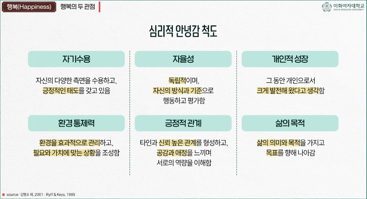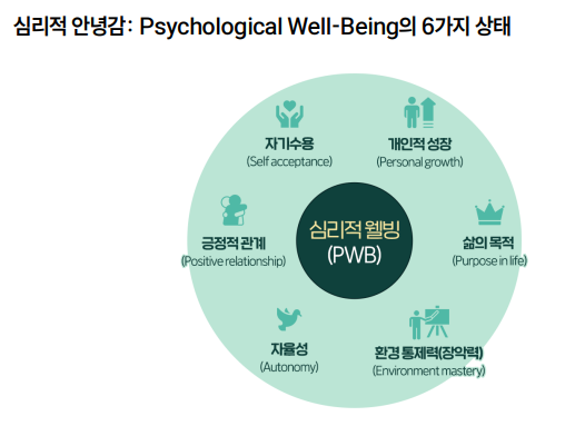 - 구성요소: 자기수용, 자율성, 개인적 성장, 환경통제력, 긍정적 관계, 삶의 목적 > 역경을 극복하는 역할