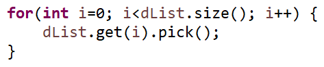 dList의 0번째 인덱스값은 ryan이므로 ry.pick();=dList.get(0).pick();은 같은 의미이다.