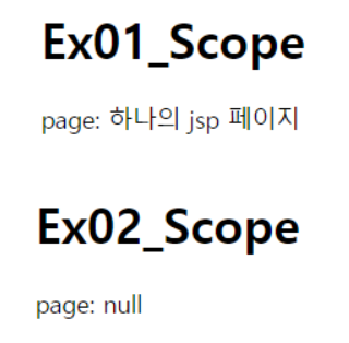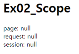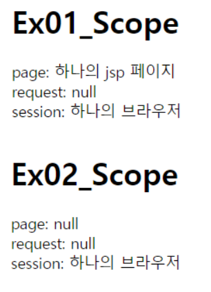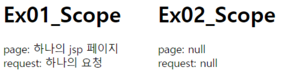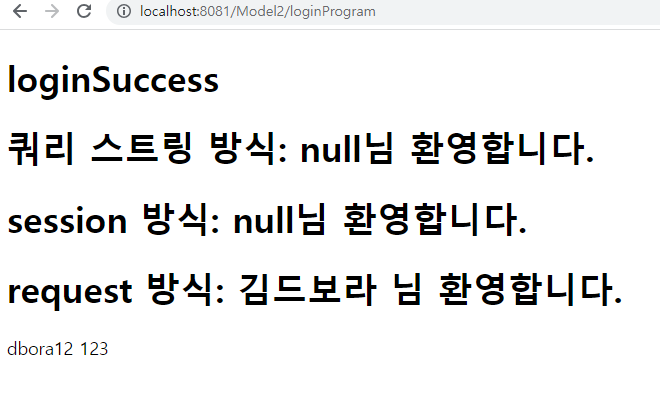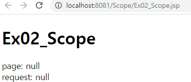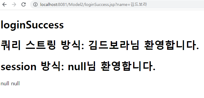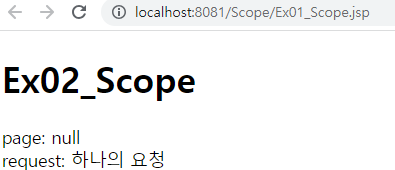 - 2번 페이지 실행: 2번 페이지에 request객체에 값이 없으므로 null값