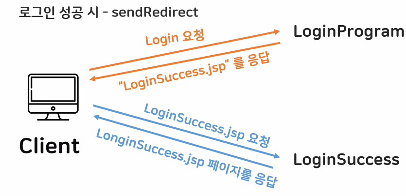 | 구분 | Forword 방식(request 방식) | SendRedirect 방식(querystring 방식) |