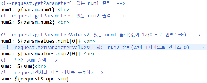 -JSP 내장객체에 저장된 값들을 출력할 때 사용
