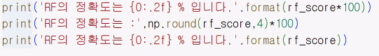 print('LGB 모델 정확도: {0:.2f}%'.format(lgb_score*100))