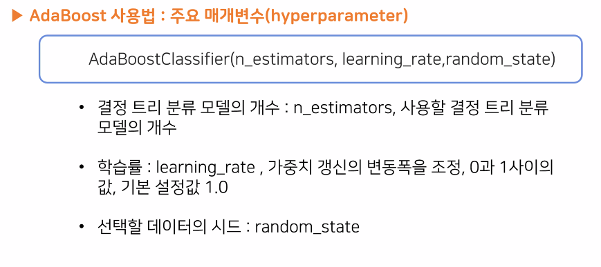4. AdaBoost: 각각의 트리들이 독립적이지 않고 오류 데이터에 가중치를 부여