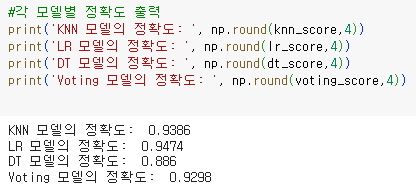 2)Voting: KNN, DT(결정트리), LR(로지스틱 회귀) 모델