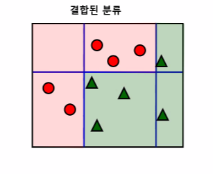 - 잘못 분류된 데이터에 집중하여 개선된 분류규칙을 만드는 단계를 반복하며 성능이 높은 모델을 생성