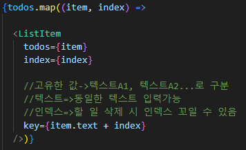 - 할 일 삭제하는 함수 실행하기:onClick()→index 매개변수