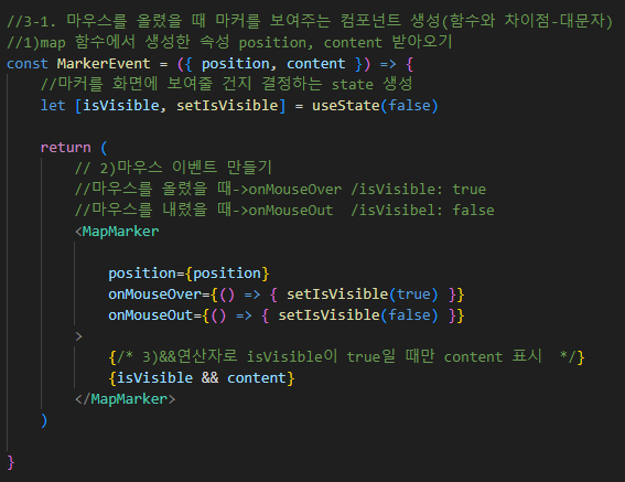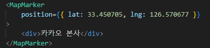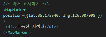 3. <MapMarker>: 마커 표시, <Map> 내부에 작성