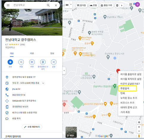 *위도, 경도 찾는 방법: 구글 지도에서 원하는 장소 검색 후-’이곳이 궁금한가요?’ 혹은 ‘주변 검색’ 클릭-위도/경도 복사