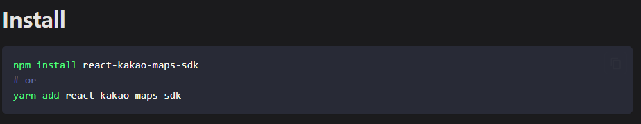 - kakao map install: install 코드를 terminal에 붙여넣기