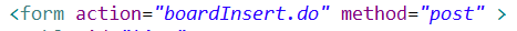 작성하기 버튼 클릭 시 FrontController로 이동하도록 form 태그의 action값을 boardInsert.do로 변경