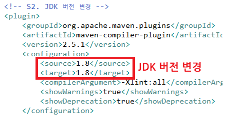 S1. Spring version: 5.0.2 버전으로 변경, java version: 1.8 버전으로 변경