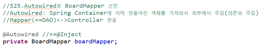 S25. Autowired로 BoardMapper 선언(BoardController↔Mapper): DAO와 Controller 연결