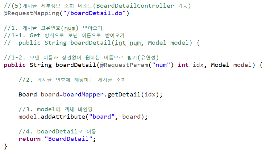 - 게시글 번호에 해당하는 게시글 조회: boardMapper의 getDetail에 게시글번호 넣기