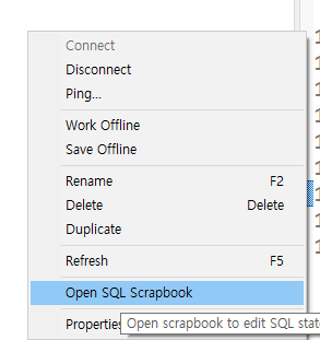 4. sql scrapbook 열기: 오른쪽 마우스-Open SQL Scrapbook